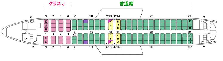 ※JALグループ国内線の代表的なシートマップを掲載しています。 ※運航される機材や座席仕様等は予告なく変更となる場合もございます。 ※JTA便(福岡-沖縄(那覇)線を除く)およびJAL便の一部については、普通席のみの機材にて運航いたします。
