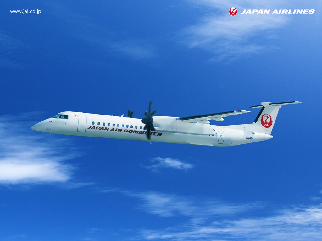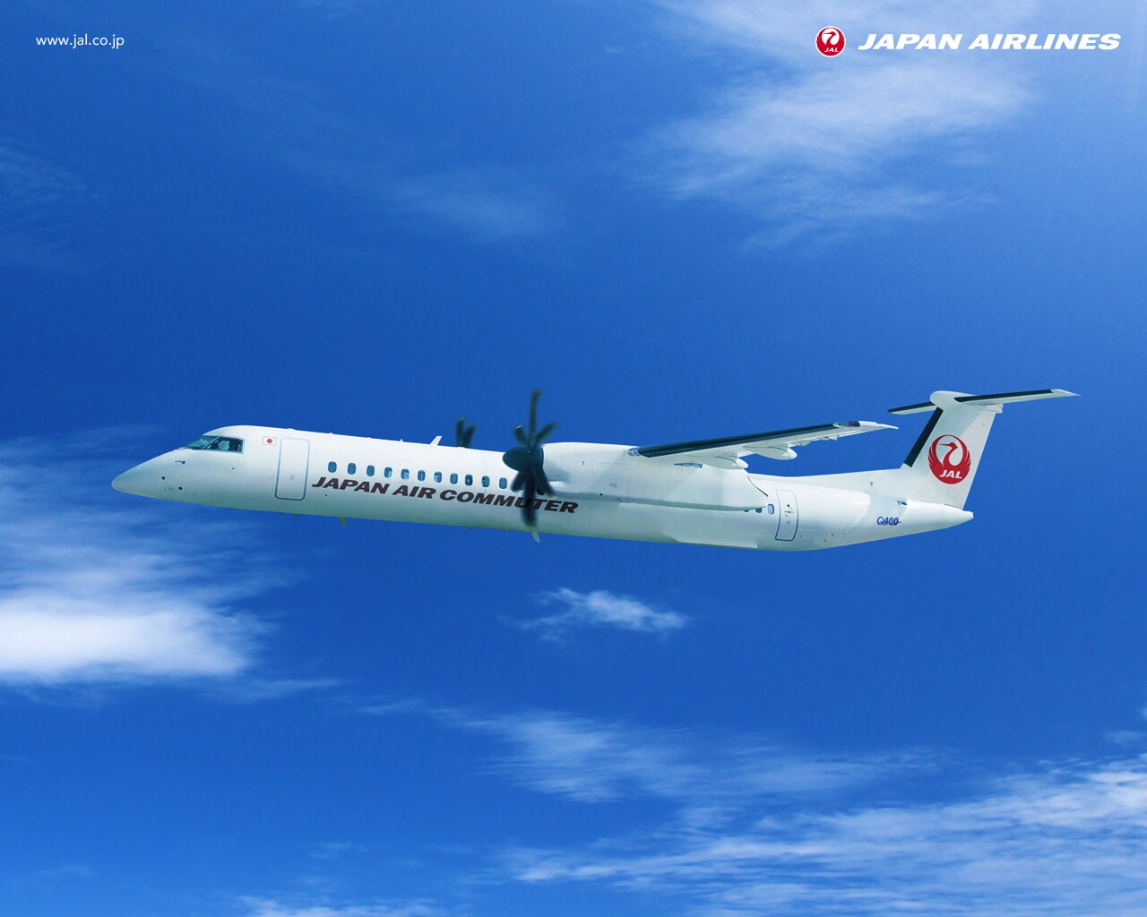 Q400のQ(quiet/静粛性)が意味する低騒音とジェット機に匹敵するスピード・快適性を兼ね備えた飛行機です。静かに優しく、JACの新世代高速ターボプロップ機Q400が楽しい空を演出します。