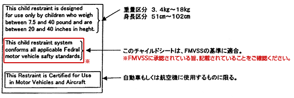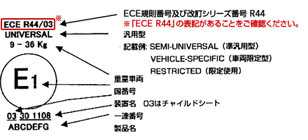 チャイルドシートの各種基準マーク見本