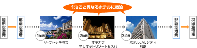 「往復航空券」+「宿泊」+「オプショナルプラン」がJAL Webサイトで簡単に予約でき、宿泊施設やご利用便をさまざまに組み合わせ、あなただけのオリジナルツアーを作ることができます。