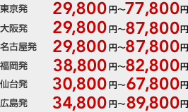 - ◆出発地:東京/大阪/名古屋/福岡/仙台/広島