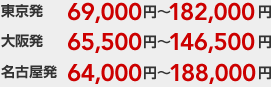 - ※ご利用便によりフライト差額が必要となる場合がございます。 ※東京発のお客さまは直行便もご利用いただけます。