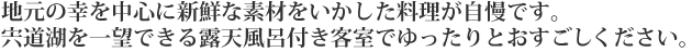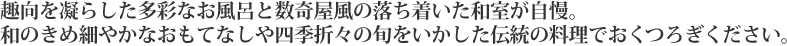- ●記念日の方に、夕食時祝い酒とお赤飯のサービス(要事前予約:5日前〜前日までにお客さまご自身でご宿泊施設へご予約ください)