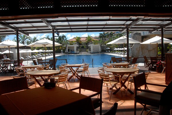 ガーデンプールに隣接したレストランで開放感あふれるひととき。