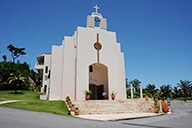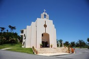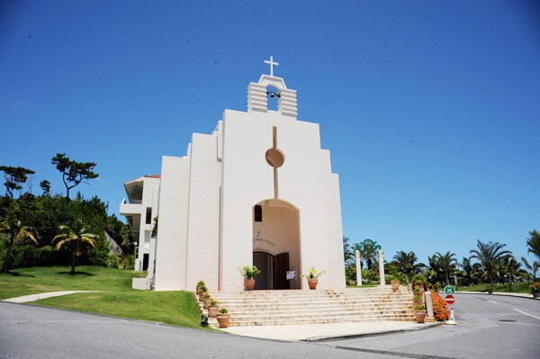 亜熱帯の花々や緑に彩られ、海と空の美しいブルーに包まれた楽園のチャペル