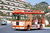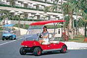 軽やかなフットワークで施設内を楽に移動できるレンタルカートと、広大なカヌチャの敷地内を移動するのに便利な、施設内専用無料トロリーバスが用意されています。