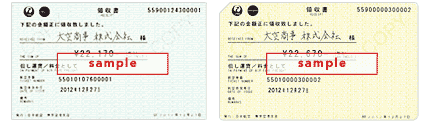 Receipts may be requested at an airport counter or through the JAL Contact Center (by mail).