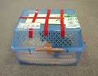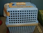 Basically, the crate should be one made for carrying. Crates must be made of fiberglass, durable plastic or metal, and the door (lid) must lockable. Examples of containers that are not accepted
