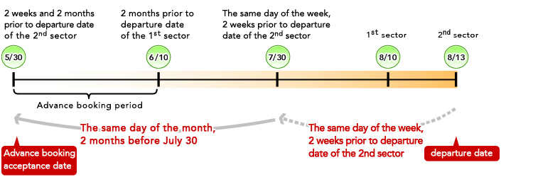 - ※The reservation acceptance date will be 2 weeks and 2 months prior to departure date of the 2nd sector.
