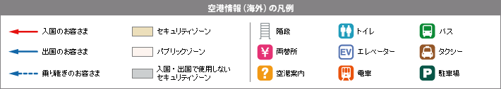 乗り継ぎ便(国際線)の搭乗手続き、ならびに乗り継ぎ先までの手荷物受託がお済みのお客さまは、国内線到着ロビー(2階)を出られた後に、隣接する国内線出発ロビー(2階)にある「国際線乗り継ぎ専用エリア」で「手荷物検査」「出国審査」をお受けになった後に、国際線出発ゲートへお進みください。この場合の乗り継ぎ時間は60分です。
