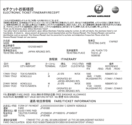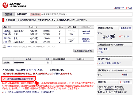 JALホームページからeチケットお客様控を印刷する方法