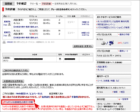 JALホームページからeチケットお客様控を印刷する方法