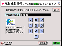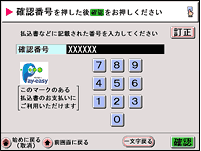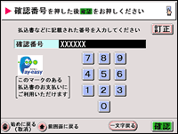 | 「入金手順、お支払い期限のご案内メール」に記載されている確認番号(6桁)を入力して、確認ボタンを押してください。 |