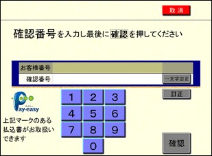 「入金手順、お支払い期限のご案内メール」に記載されている確認番号(6桁)を入力して、確認ボタンを押してください。