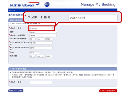 パスポート情報入力 |