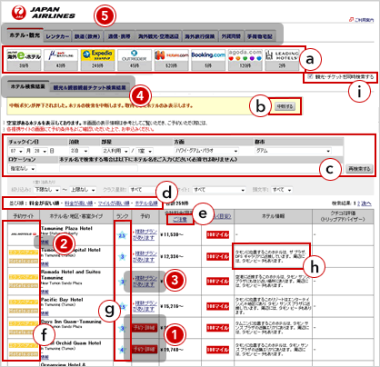 海外ホテル一括検索 結果画面ご利用方法