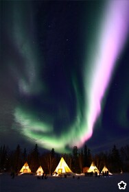 先住民の住居を模したテント「ティーピー」で、観賞中いつでも暖をとれます。コーヒーやホットチョコレートなど温かいお飲物をご用意。