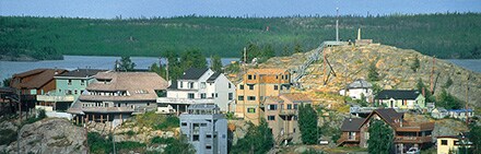 イエローナイフの見どころへご案内します。プリンスオブウェールズ博物館(入場)、ノースウエスト準州州議事堂(下車)、 グレートスレーブ湖上のアイスロード(下車)、ダウンタウン・オールドタウン(車窓)