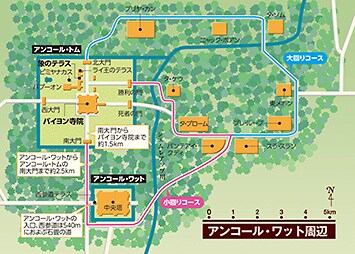 世界最大級の石造寺院。寺院全体はヒンドゥー教の世界観を具体化したもので、塔堂は世界の中心とされる須弥山を、周壁はヒマラヤを環濠は大海原を象徴しています。まさに、密林に隠された神の住まう世界です。