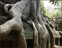 タ・プロームこの遺跡が他と違うのは、遺跡を保護・保存するのではなく、ジャングルの浸食をそのまま残している点。