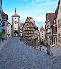 中世の雰囲気漂う街が南北約400kmにわたり連なるロマンチック街道。中でもローテンブルクは「宝石」と称されます。 |