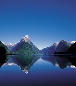 世界遺産のフィヨルドにあるミルフォードサウンドで氷河から造られたダイナミックな景勝を堪能。 |