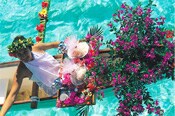 4組8名でボラボラ島をクルーズ。シャンパン片手に美しいラグーンに沈む夕日をご覧いただきます。記念にお二人の写真を撮影して、CD-ROM(写真20枚入り)でお渡しいたします。
