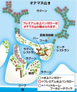 透き通るような美しく青い遠浅のラグーンに、南国の水平線を望む眺めの良い水上バンガロー。心地よく開放感に満ちた南風の恵みをテラスで、室内で感じます。