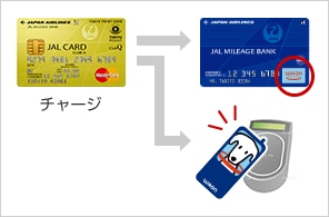 JALカード TOKYU POINT ClubQとモバイルJMB WAONをセットで登録すると、JALカードからチャージでき、「チャージ」でも「お支払い」でもマイルがたまります。