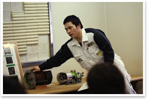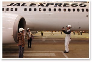 これまでのJALカード航空教室の参加者アンケートでリクエストが多かったグランドスタッフも初めて参加しました。