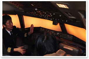 森機長、藤本機長、石田副操縦士はこの2日間、参加者の皆さまのご案内役として参加しました。