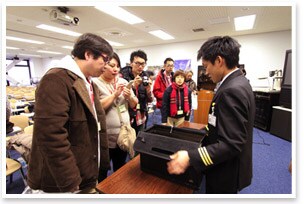 2階の会場では、石田副操縦士がフライトバックの中身を大公開!