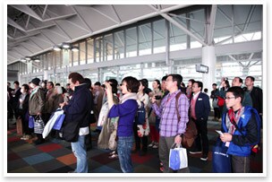 参加者の皆さまは、これから搭乗されるチャーター JL3930便(Thank you!30周年)のチケットを受け取って、成田空港へ!