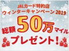 "キャンペーン期間中にJALカードショッピングマイル・プレミアムにご入会ならびにキャンペーン参加登録をしていただいた方に500マイルをプレゼント! さらに、JALカード特約店で合計5,000円(税込)以上ご利用いただいた方の中から抽選で50名様に500マイルをプレゼント!"