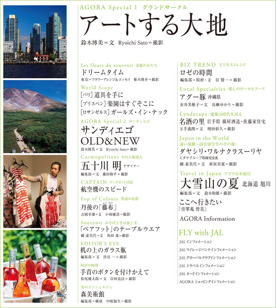 「アゴラ」はJALグローバルクラブ会員やCLUB-Aカード、CLUB-Aゴールドカード、JALダイナースカード、プラチナ本会員の皆さまに向けてお届けする会員誌です。