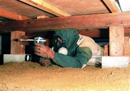 安全性に配慮したニオイの少ない薬剤を床下へ直接散布して駆除・予防するバリア工法。