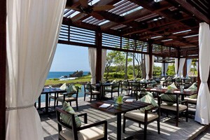 クラブの芝生が目に飛び込んできます。インドネシアでホテルリゾート内にゴルフ場があるのは、ここニルワナだけ。そして、バリ島四大寺院の一つであるタナロット寺院がすぐ目の前に見え、夕陽が寺院の向こう側に沈む美しさはいつまで見ていても飽きることはないでしょう。