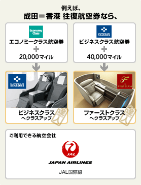 ためたマイルでご購入いただいた航空券よりひとつ上のクラスにご搭乗いただけます。