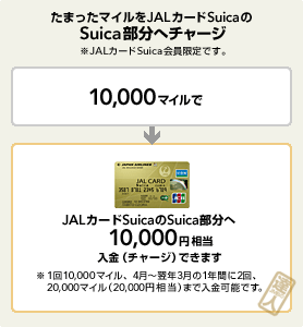 JR東日本のビューサンクスポイント600ポイント以上で、JMBのマイルに交換できます。10,000マイルで、Suica部分に10,000円相当がチャージ。Suicaマークのあるお店でピッとタッチしてサッとお買い物ができます。