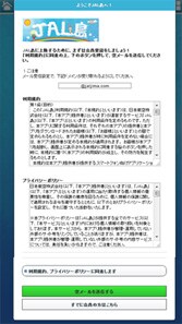 [1] アプリダウンロード後、下記画面の「まずは会員登録」をタップすると、JAL島に関するお知らせページを表示します。