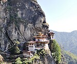 ブータンは、南アジアのインド北東部、東ヒマラヤ山脈の南麓に位置する内陸国で、北は中国のチベット、南はインドに挟まれています。正式国名は、ブータン王国。自国ではドゥルックユル(Druk-yul)龍の国と呼んでいます。 面積は九州とほぼ同じ約38,394km2で、人口は約68万人。首都はティンプーです。 ブータンは、17世紀にチベットから移住したチベット仏教ドゥク・カギュ派の高僧ガワン・ナムゲルが仏教をもたらし、各地に割拠している群雄を征服し、現在の国土に相当する地域を掌握しました。19世紀の末に至り、東部トンサ郡の豪族ウゲン・ワンチュクが支配的郡長として台頭し、1907年、ウゲン・ワンチュクはラマ僧や住民に推されて、初代の世襲藩主に就任。現王国の基礎を確立しました。以来5代に及ぶ王位が継承され、100年にわたってこの国を導いてきましたが、近代化と民主化で新しいブータンに移り変わりつつあります。 ブータンは、長い鎖国政策の影響で、外国人の往来が少なく、秘境といわれる手つかずの美しい自然と伝統的文化が保たれています。 観光資源も多く、野生動物が生息する亜熱帯の密林から、原生林に覆われた山間の峠道、険阻な山岳地帯から、氷河地帯、7,000m級のヒマラヤも仰げます。 この自然の中に、チベット宗教の華麗な寺院や仏塔、ゾンと呼ばれる砦を兼ねた地方行政の建物、切妻屋根の2〜3階建ての伝統的民家、独特の民族衣装で暮らす人びとなどブータンの宗教と生活文化を堪能することができます。