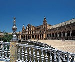 セビリアは、スペイン南西部、アンダルシア地方の政治、経済の中心地で、人口約70万人のスペイン4番目の都市。8世紀から約500年間イスラムに支配され、コルドバと並ぶ大都市となりましたが、1248年のレコンキスタ(国土回復運動)で奪還され、大航海時代の重要な都市としてさらに発展しました。1929年にはイベロ・アメリカ博覧会、1992年にセビリア万国博覧会が開催されています。街のシンボルとなっているカテドラルのヒラルダの塔は、イスラム時代の面影を残し、カテドラルにはコロンブスの墓もあります。 セビリアは、闘牛とフラメンコの本場であり、スペイン3大祭りのひとつ、セビリアの春祭りは有名です。また、メリメの『カルメン』、ボーマルシェの『セビリアの理髪師』の舞台ともなり、宮廷画家ベラスケスやムリーリョなどの巨匠を排出した街としても知られています。
