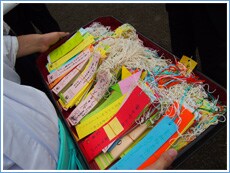 今年は7月3日(水)〜7月7日(日)の5日間、国内各空港の日本航空グループチェックインカウンターまたはゲートラウンジで、短冊に願い事を書いていただき笹に結んでいただきました。全国のお客さまからお預かりしました約29,000枚の短冊は、願い事が叶うように祈りを込めて、8月20日に仙台市の大崎八幡宮に祈願奉納いたしました。