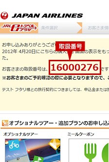 JAL eトラベルプラザでの取扱番号・予約番号