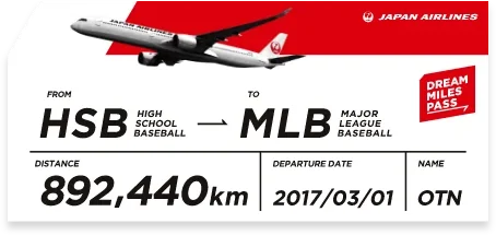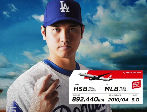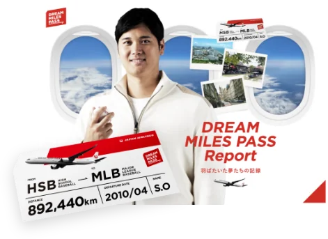 JAL「DREAM MILES PASS」は、 大谷選手が夢を叶えるまでの 総移動距離分の航空券で、 夢のために移動が必要な方を サポートするプロジェクト。 ご自身のマイルを使って、 誰かの夢を応援することもできます。