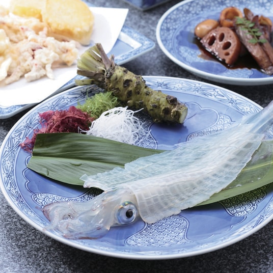 玄界灘に面した港町で新鮮な魚介類を朝市で堪能!呼子といえばイカ。名物「イカの活け造り」をお試しあれ。