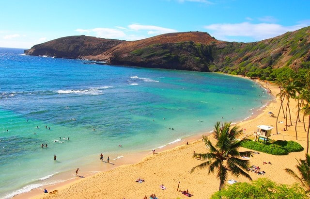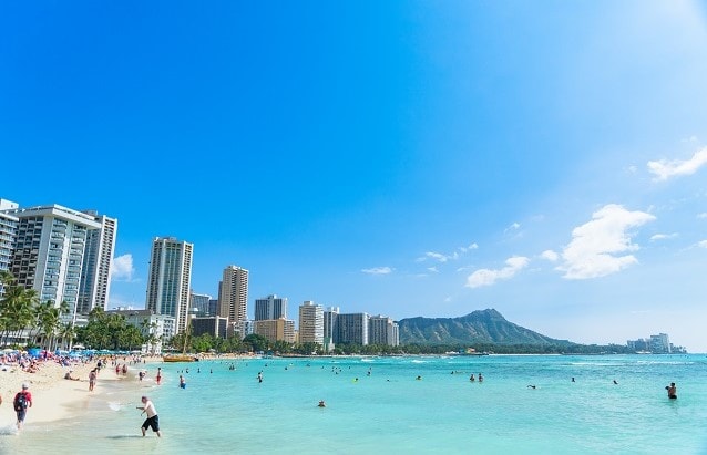 白い砂浜と青く透明な海が美しいワイキキビーチは、波が穏やかなのでサーフィン初心者にぴったりなビーチです。