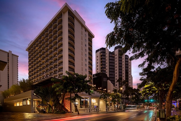 ワイキキ中心に位置し、ホテル館内はモダンなハワイらしい雰囲気が魅力のホテルです。ワイキキビーチまで徒歩約5分の好立地!