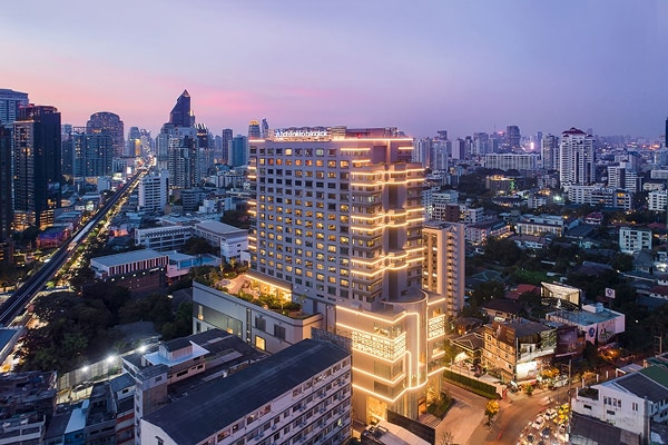 バンコクの中心地アソークエリアに位置する日系ホテル。24時間日本語対応可能で、ループトップバーでは夜景とともにカクテルをお楽しみいただけます。