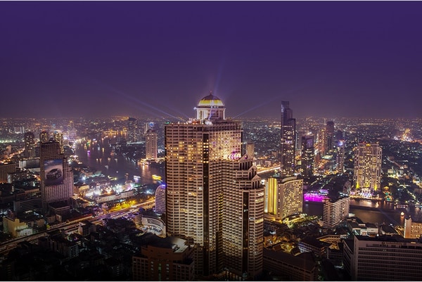 地上314メートルからはバンコク市内を一望できます。タイで一番高いルーフトップバーでのカクテルは格別!